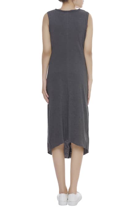 A fabulous addition to get through sunny summer days is this grey-hued, cowl draped dress. Sport this attire with statement white converse to run errands fashionably.