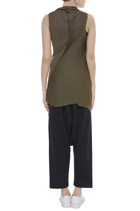 Khaki hued jersey top with back gathers, perfect for your next beach vacation.