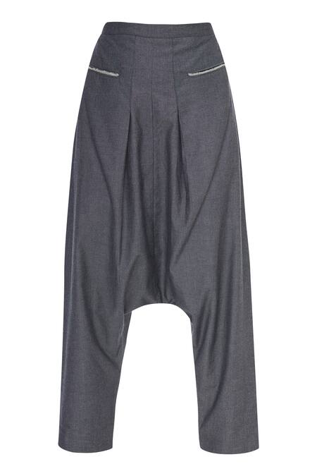 Enhanced with welt pockets on the front, this grey comfortable denim loose pants is a smart pick this summer season. Pair it up with a black top for a complete look.