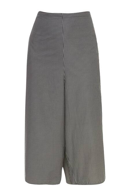 This catchy ongoing trend is an essential in your wardrobe, featuring this comfortable half & hlaf look culottes grey & white striped culottes, it is enhanced with one side vertical & other horizontal stripe print.