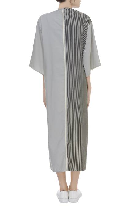 Flared sleeves, Printed dress, Striped, Asymmetric hemline