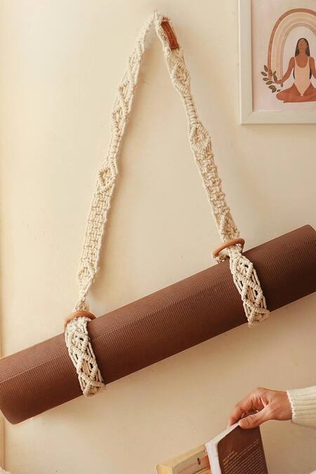 Off White Cotton Thread Boho Yoga Mat Straps