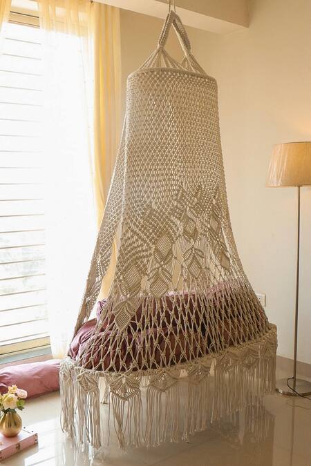 Off White Cotton Thread Zen Retreat Bed Swing