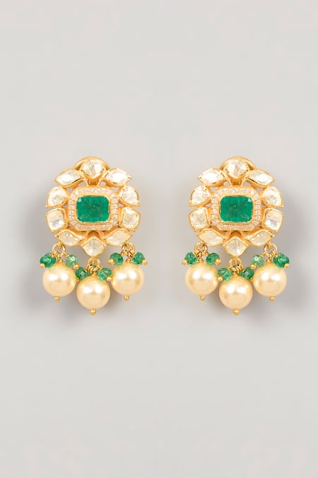 22kt gold plated with intricate detailing, Moissanite polki embellishments, Bead and pearl drop accents