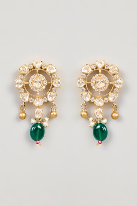 White earrings crafted in 925 silver featuring moissanite polki stones and semi-precious beads