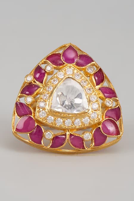 Red Crystals, Stones Moissanite Polki Embellished Designer Ring