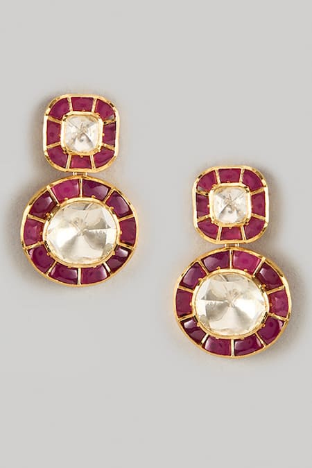Red Diamonds, Stones Moissanite Polki Studded Earrings