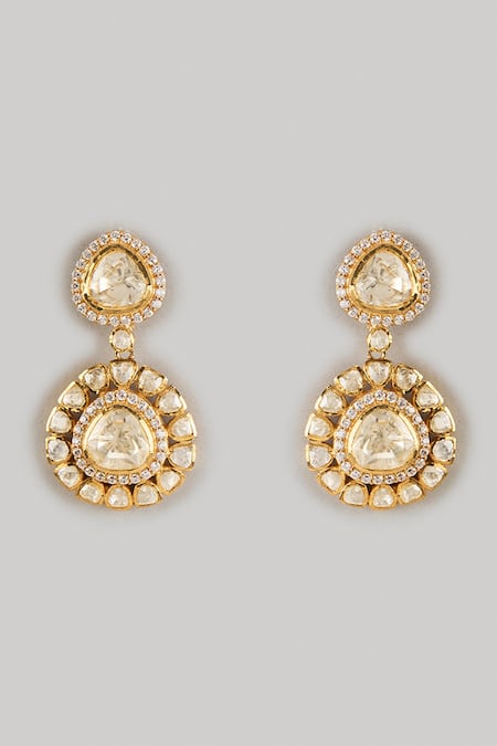 White Crystals, Diamonds Trellis Moissanite Polki Embellished Earrings
