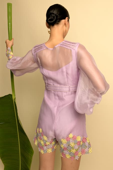 Buy_Karishma Khanduja Bareilly_Purple Organza Round Playsuit _Online_at_Aza_Fashions