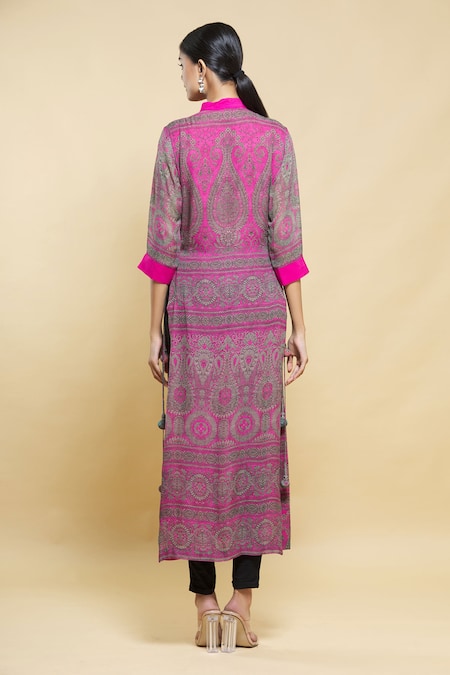 Pink long kurta with all over printed motifs.