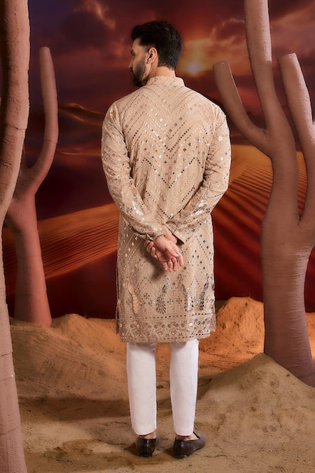 Beige Georgette Sequins, Embroidery Designer Kurta
