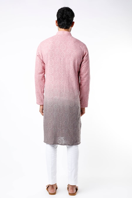 Mud pink & grey ombre kurta featuring chikankari and sequins embroidery in floral motifs. Paired with matching pant for a complete look.