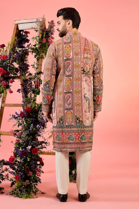 Pink chikankari kurta featuring intricate zari detailing