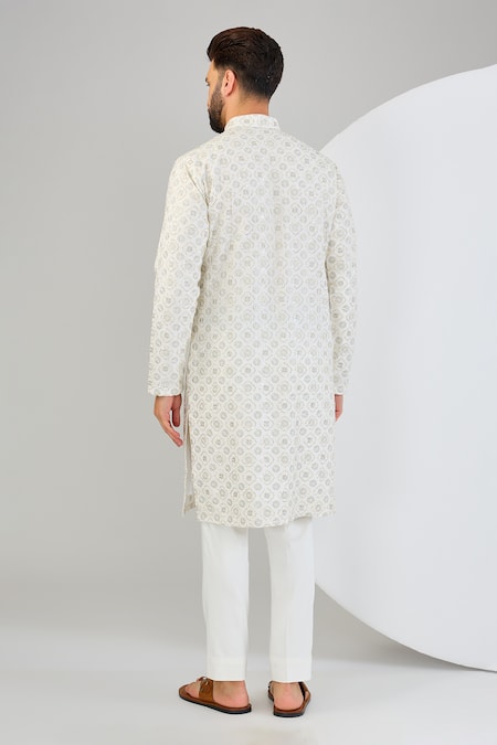Ivory chikankari kurta featuring intricate sequin and zari embroidery in a floral pattern