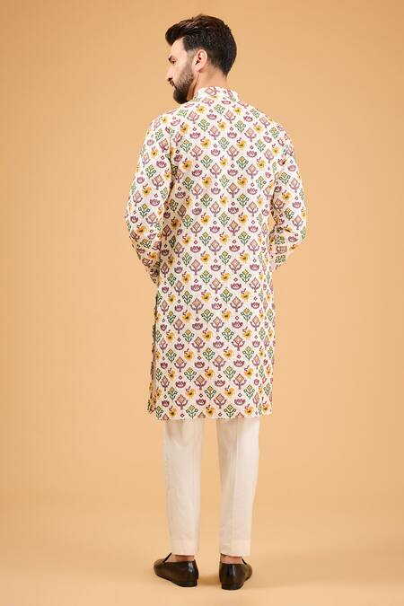 White straight kurta featuring sequin & thread embroidery in phulkari pattern