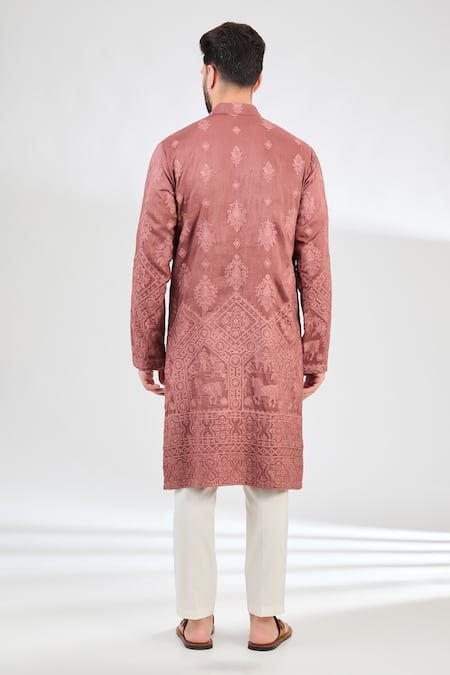 Mauve taupe kurta featuring thread work embroidery in geometric pattern and horse motif