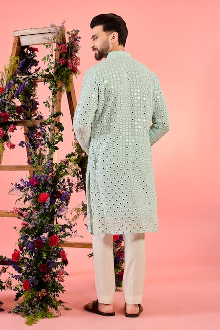 Ice blue kurta featuring classic mirror work in a georgette fabric
