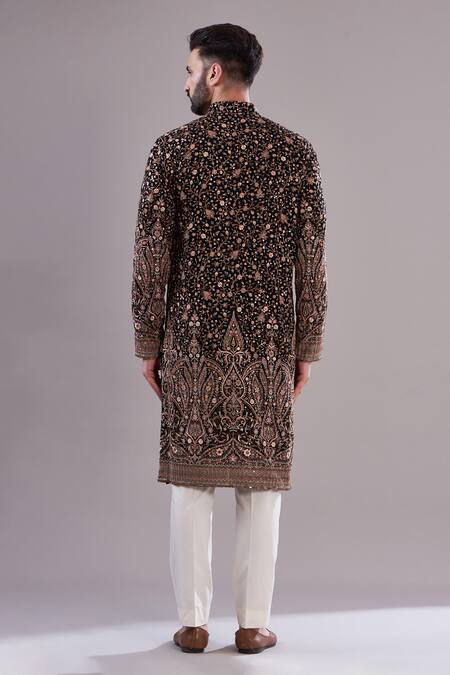 Black kurta in georgette fabric featuring intricate thread and sequin embroidery in floral patterns