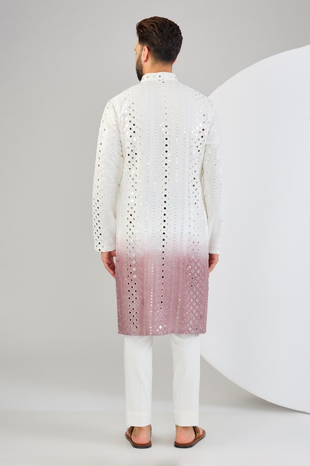 Multi color silk kurta featuring a stand collar and full sleeves with a cream and mauve ombre effect