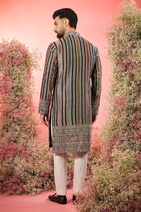 Multi color kurta featuring a Symphony of Stripes with exquisite thread work details