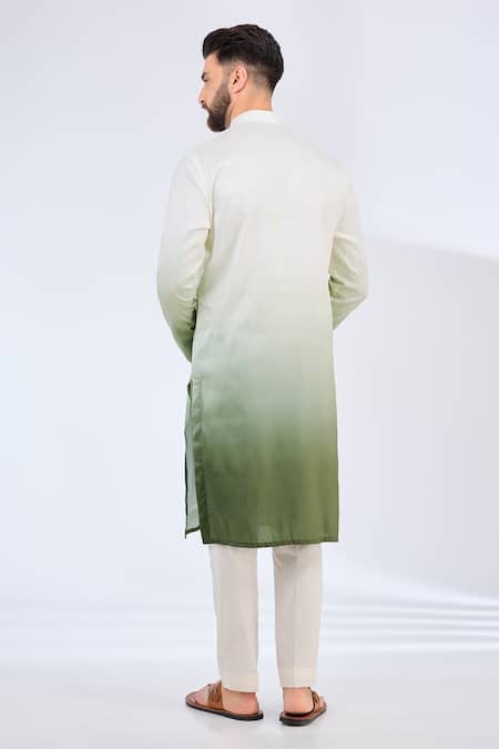 Green Polyester Ombre Straight Kurta