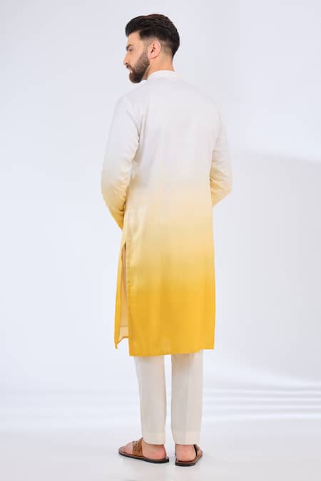 Yellow ombre straight kurta in poly silk featuring a band collar and long sleeves