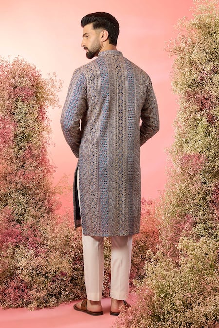 Purple royal zari kurta featuring intricate patterns and a mandarin collar
