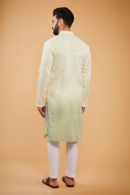 Multi color silk ombre chikankari kurta featuring floral thread and sequins embroidery