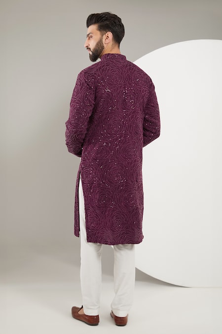 Maroon kurta featuring full sleeves with thread and sequin floral embroidery
