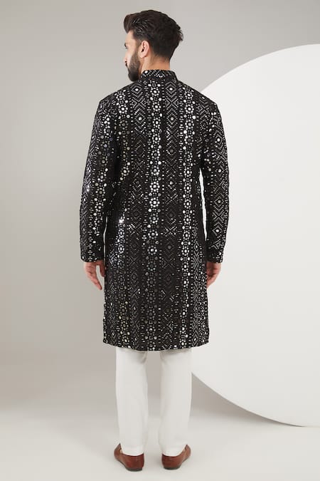 Black Silk Sequins, Mirrors And Foil Embroidered Kurta