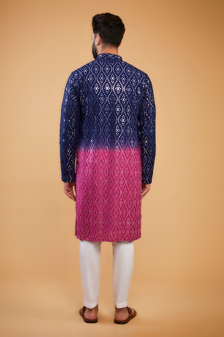 Multi color silk ombre kurta featuring heavy mirror and thread work embroidery