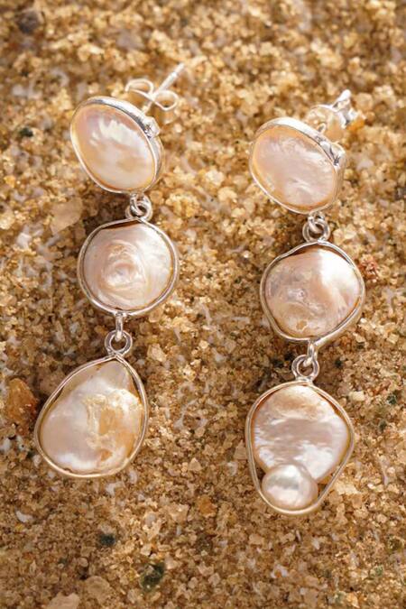 Baroque fresh water pearls in varying shapes, Gold plating with a polished finish, Elegant drop design with multiple pearl layers