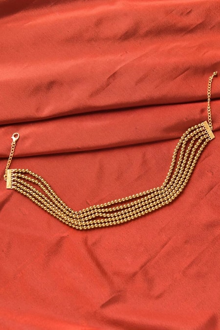 Buy_Kastiya Jewels_Gold Plated Layered Natural Hematite Necklace_at_Aza_Fashions
