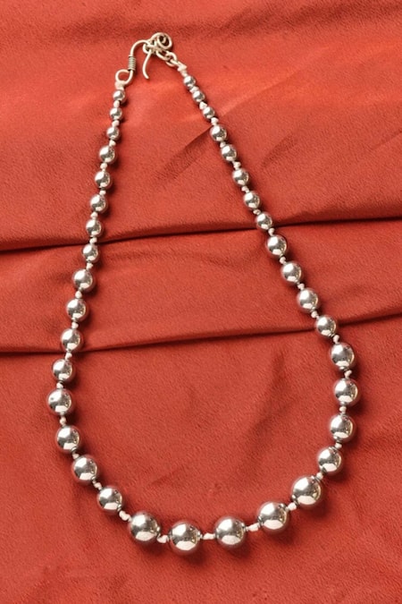 Buy_Kastiya Jewels_Silver Plated Natural Hematite Graduation Choker Necklace_at_Aza_Fashions