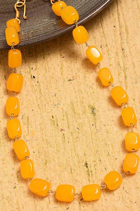 Buy_Kastiya Jewels_Yellow Stone Embellished Necklace_Online_at_Aza_Fashions