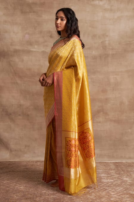 Yellow Base Fabric Pure Silk Banarasi Handloom Saree