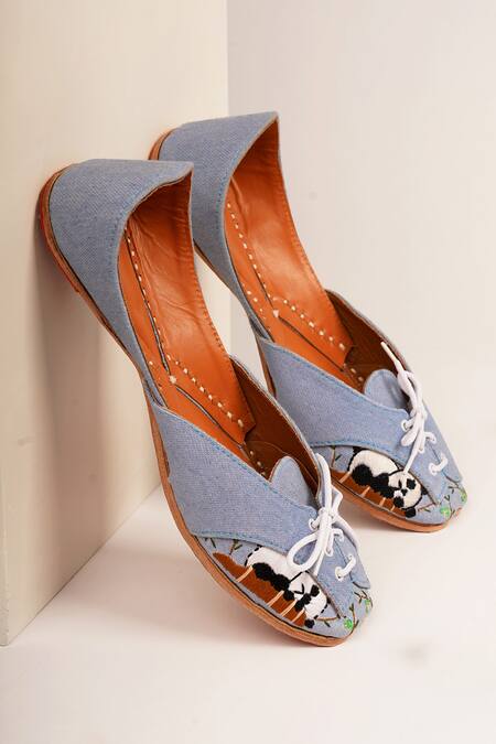 Blue Panda Embroidered Juttis