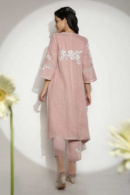 Blush pink tunic featuring anchor thread embroidery and 3D embossed gold petal floral work