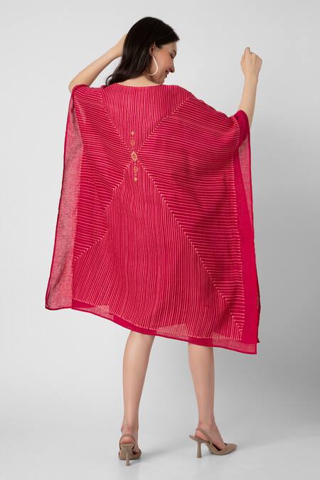 Pink Linen V-neck Geometric Print Kaftan