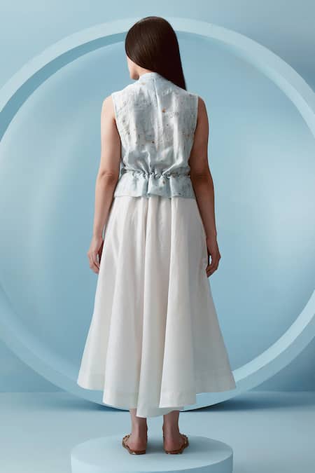 White Chanderi, Handloom Cotton Moscow Hand Splatter Paint Print Peplum Dress