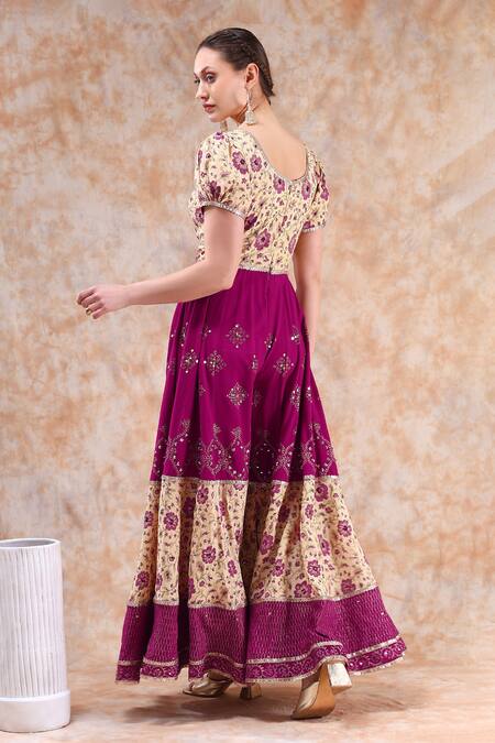 Sequin and zari thread embroidery, Floral print detailing, Puffed sleeves design