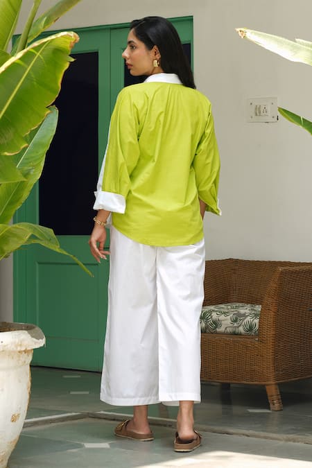 Buy_Keoo_White Cotton Embroidery Collared Shirt With Green Heart Patch And Pant