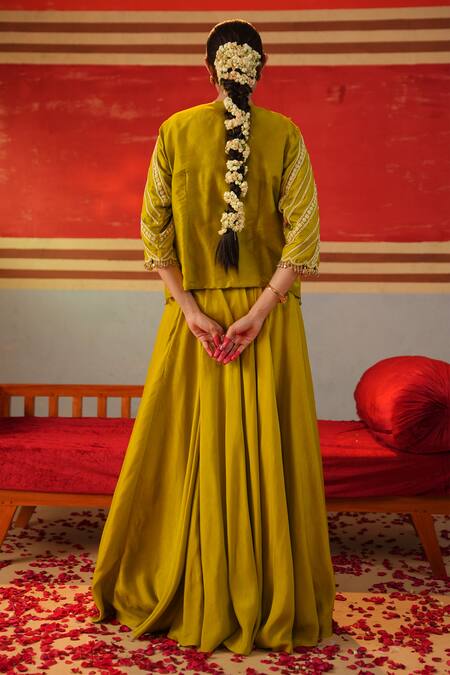 Green Silk Sequins, Beads, Avyanna Paisley Embroidered Jacket Lehenga Set