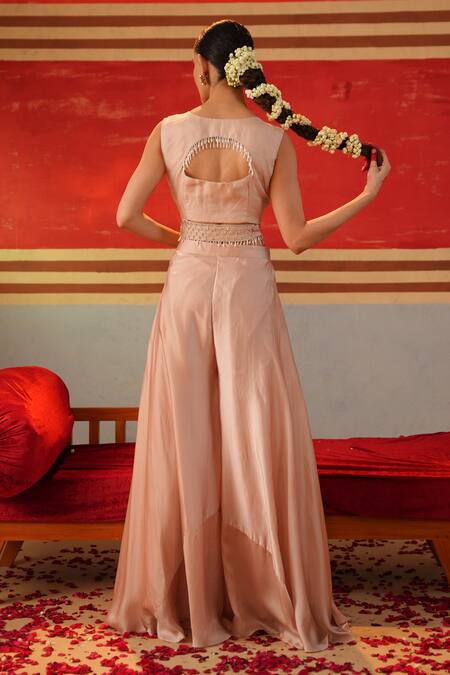 Pink Silk, Organza, Satin Bling It On Embellished Cross Blouse With Flared Pant