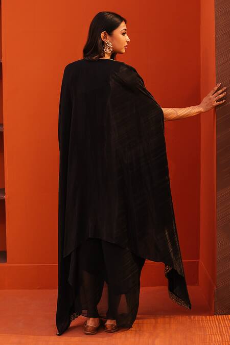Buy_Kesar Studio_Black Georgette, Crepe Mirrors, Embroidery Scoop Shisha Border Cape Skirt Set_at_Aza_Fashions