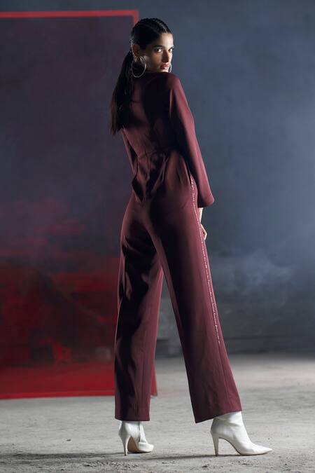 Purple Crepe Embroidery Keyhole Neck Jumpsuit