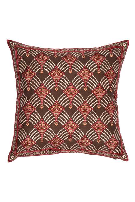 Chocolate cotton linen cushion covers with floral and thread embroidery.