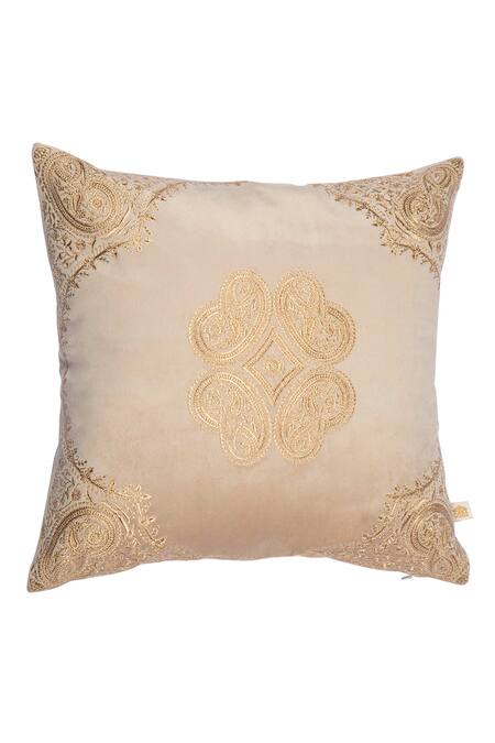 Beige Velvet Abstract, Zari Mehr Embroidered Cushion Covers - 2 Pcs