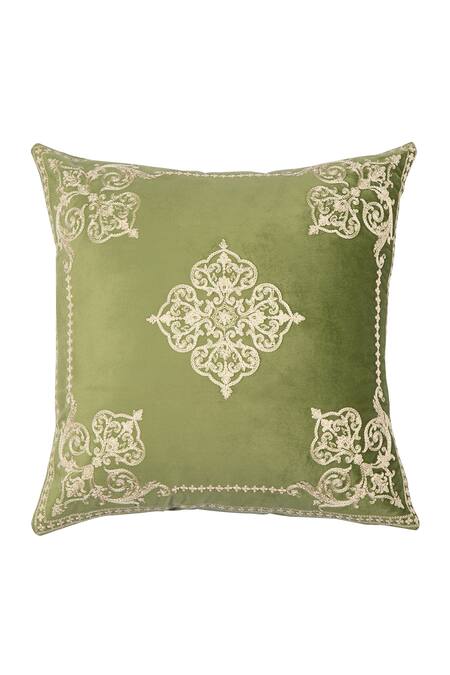 Green Velvet Floral Shaakh Embroidered Cushion Covers - 2 Pcs