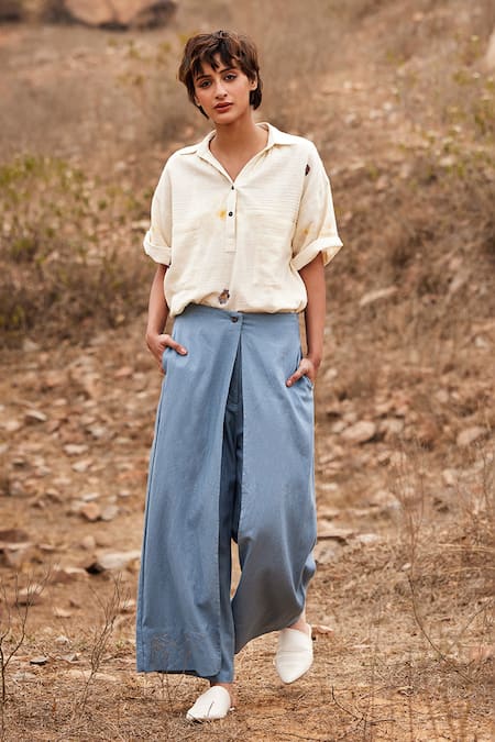 Buy_Kharakapas_Blue Linen Aasmaan Pant _Online_at_Aza_Fashions